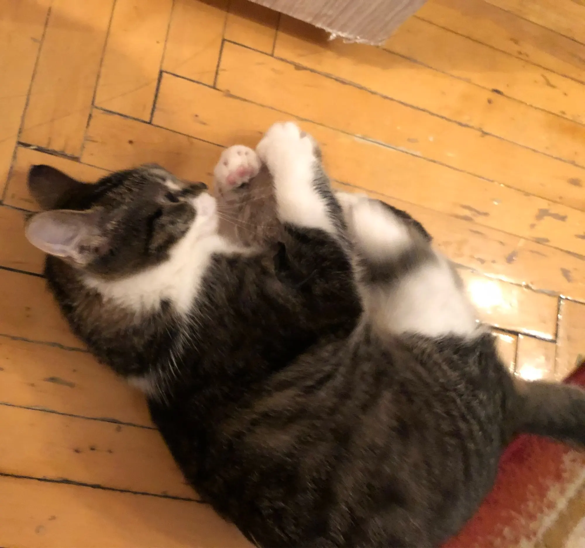 Ехала посылка долго. Кот играет очень лениво.