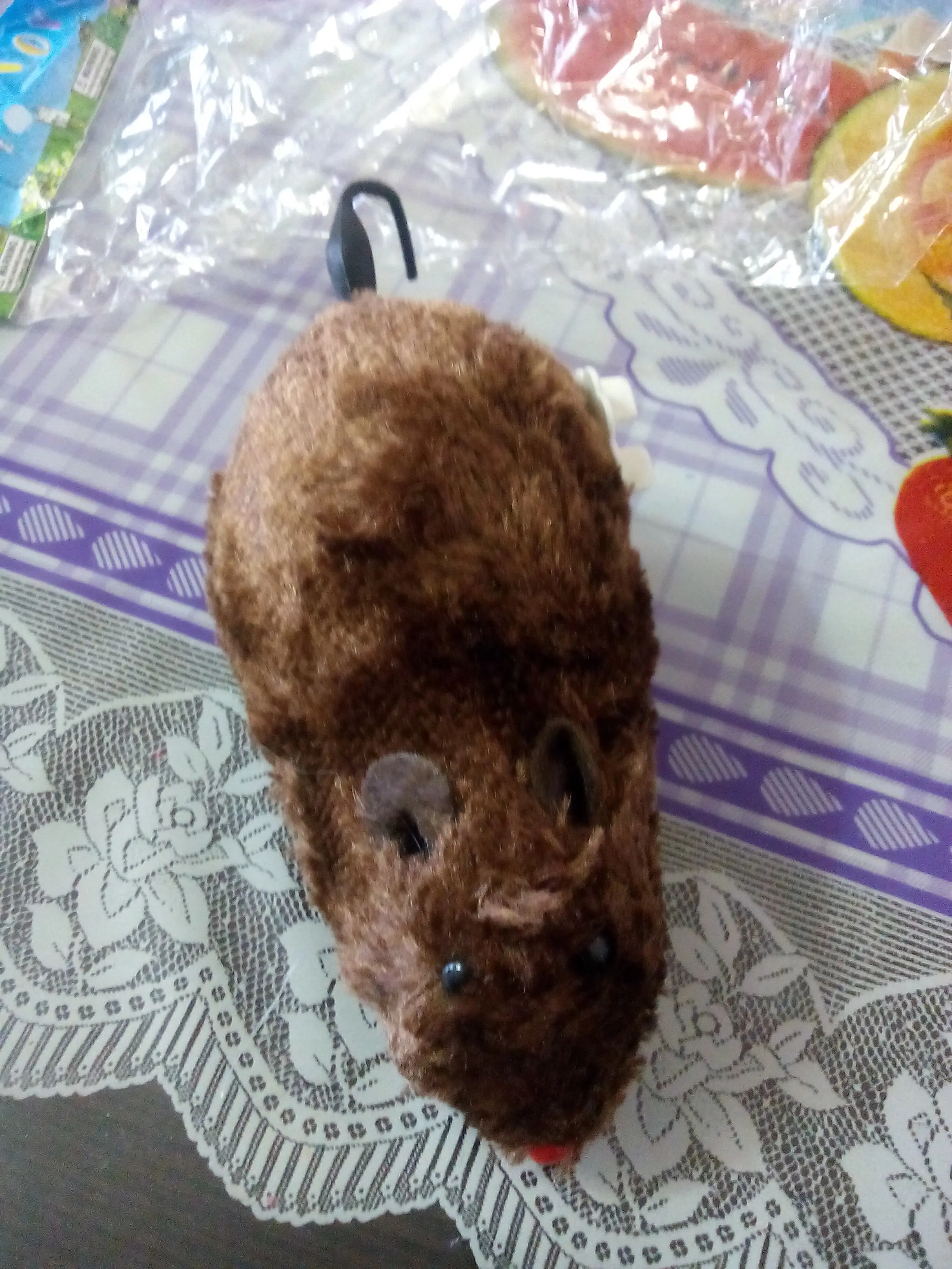Доставка быстрая. Мышка отличная. У кота появился теперь лучший друг)) Деталь для завода быстро треснула, но супер клей сделал свое дело