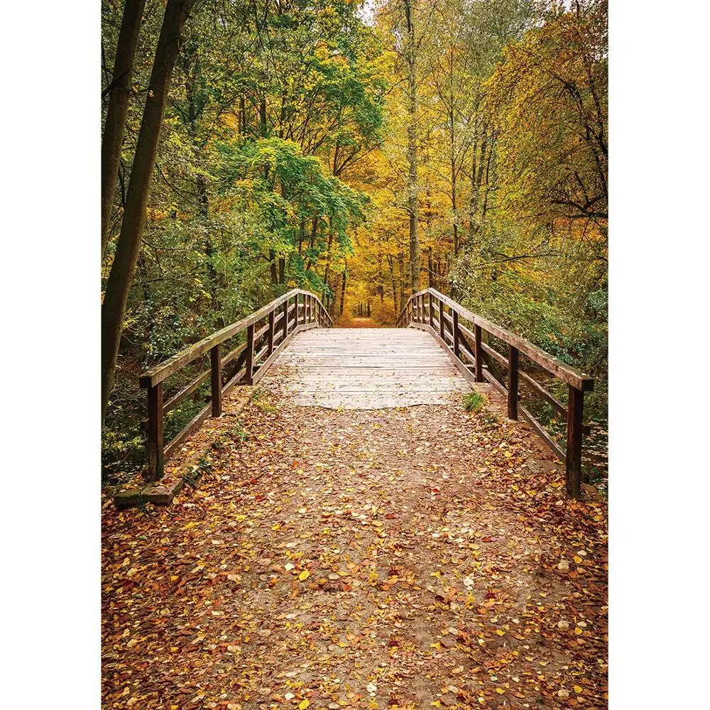 Виниловый тканевый фон для фотосъемки с изображением осеннего леса, деревянного моста, с компьютерной печатью для фотостудии