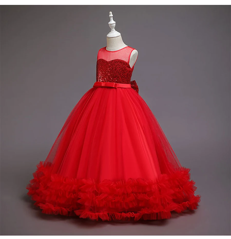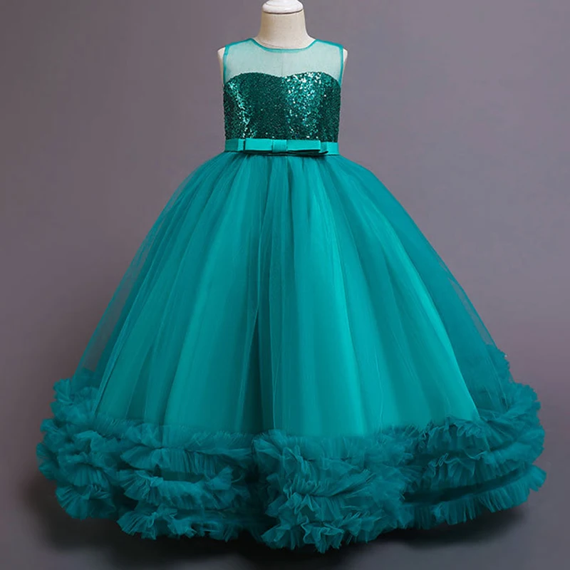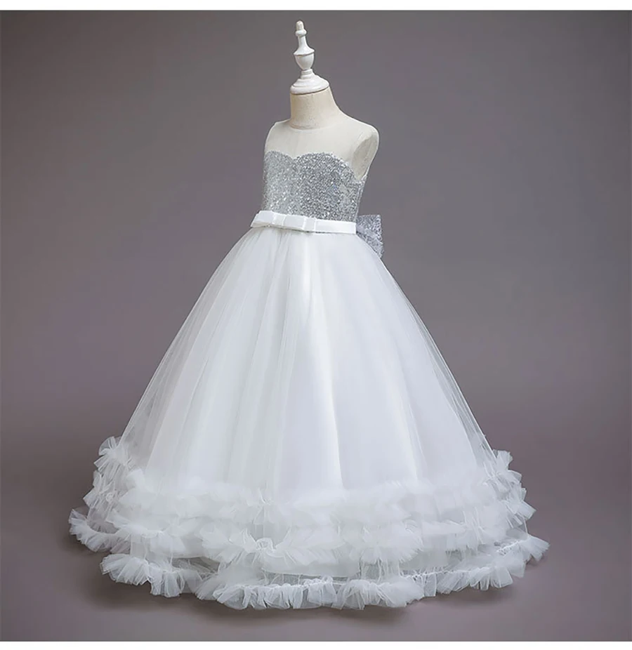 Детское кружевное бальное платье без рукавов, с цветочным принтом, для девочек 4-14 лет
