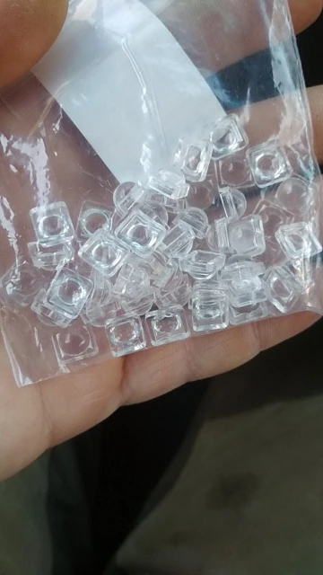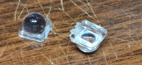 Ждал меньше месяца. Качество нормальное. Есть следы от выламывания из литниковой матрицы (нужна обработка краёв наждачкой). Брал для ws2812, подходят. На диод садятся плотно, держатся, но лучше дополнительно фиксировать. Свет с ними более плотный. Хотел использовать как линзу для оптоволокна, не катит... яркость ниже. По поводу угла и прочего см. фото