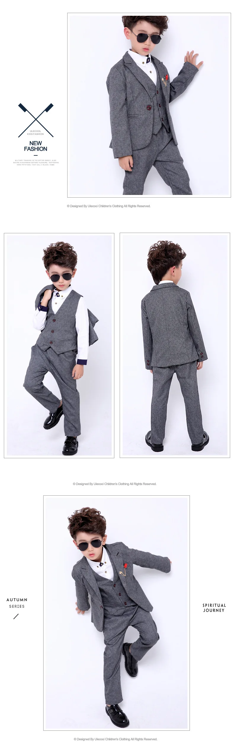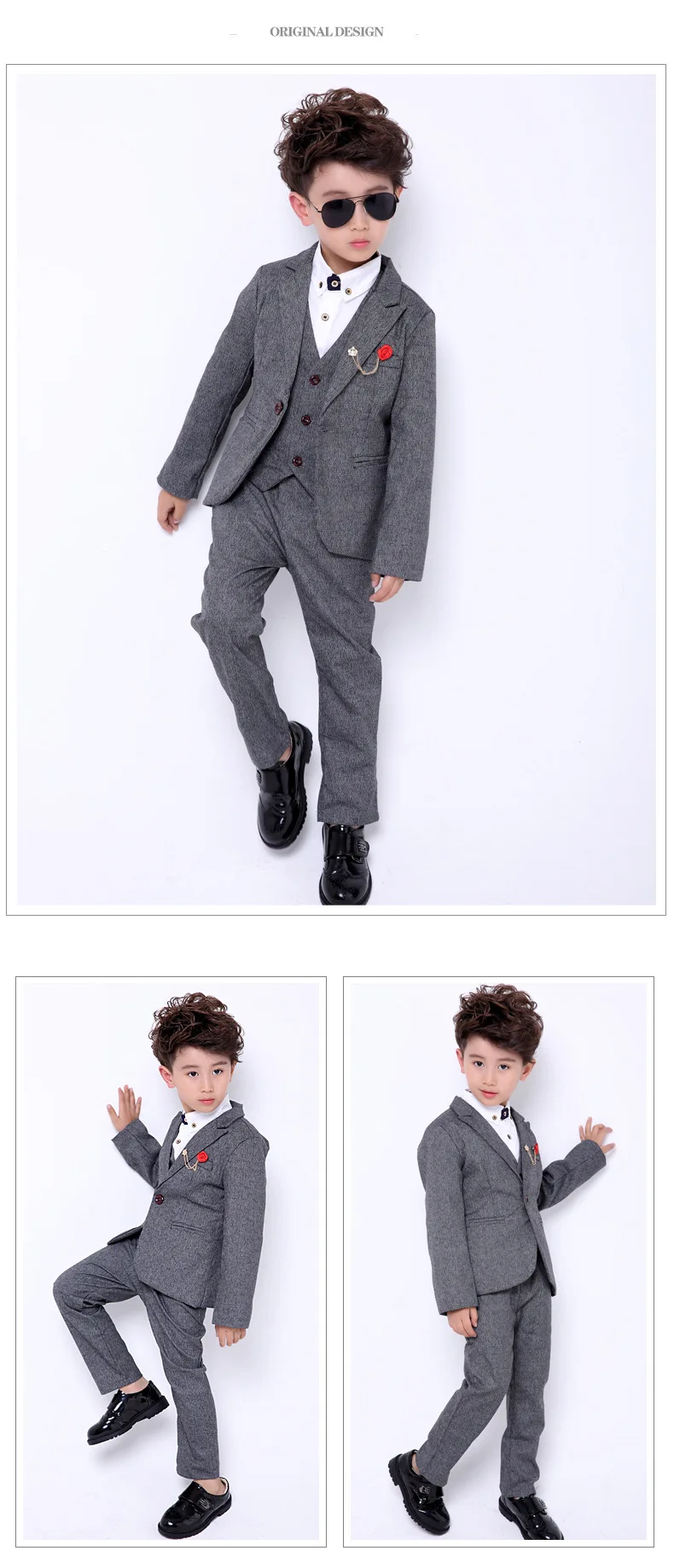 Детский осенне-зимний строгий Блейзер, жилет и брюки, костюмы из 3 предметов, наряды для мальчиков на свадьбу, детские платья, смокинг, цветочный костюм для мальчиков