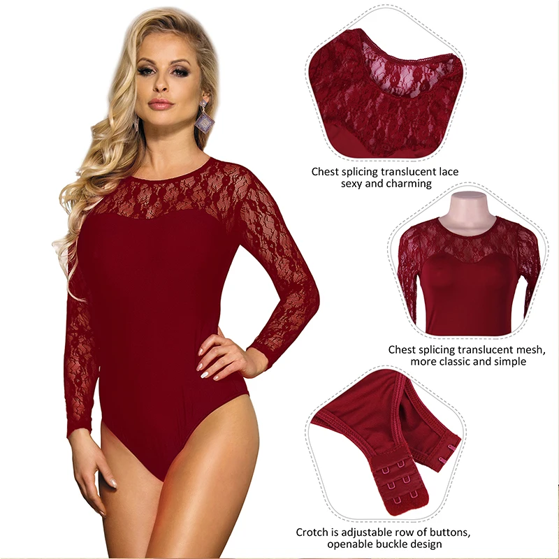 Ohyeahlover сексуальное боди с длинным рукавом и круглым вырезом, женское облегающее боди с цветочным принтом, кружевной комбинезон в стиле пэчворк, женский комбинезон, модель RL80372
