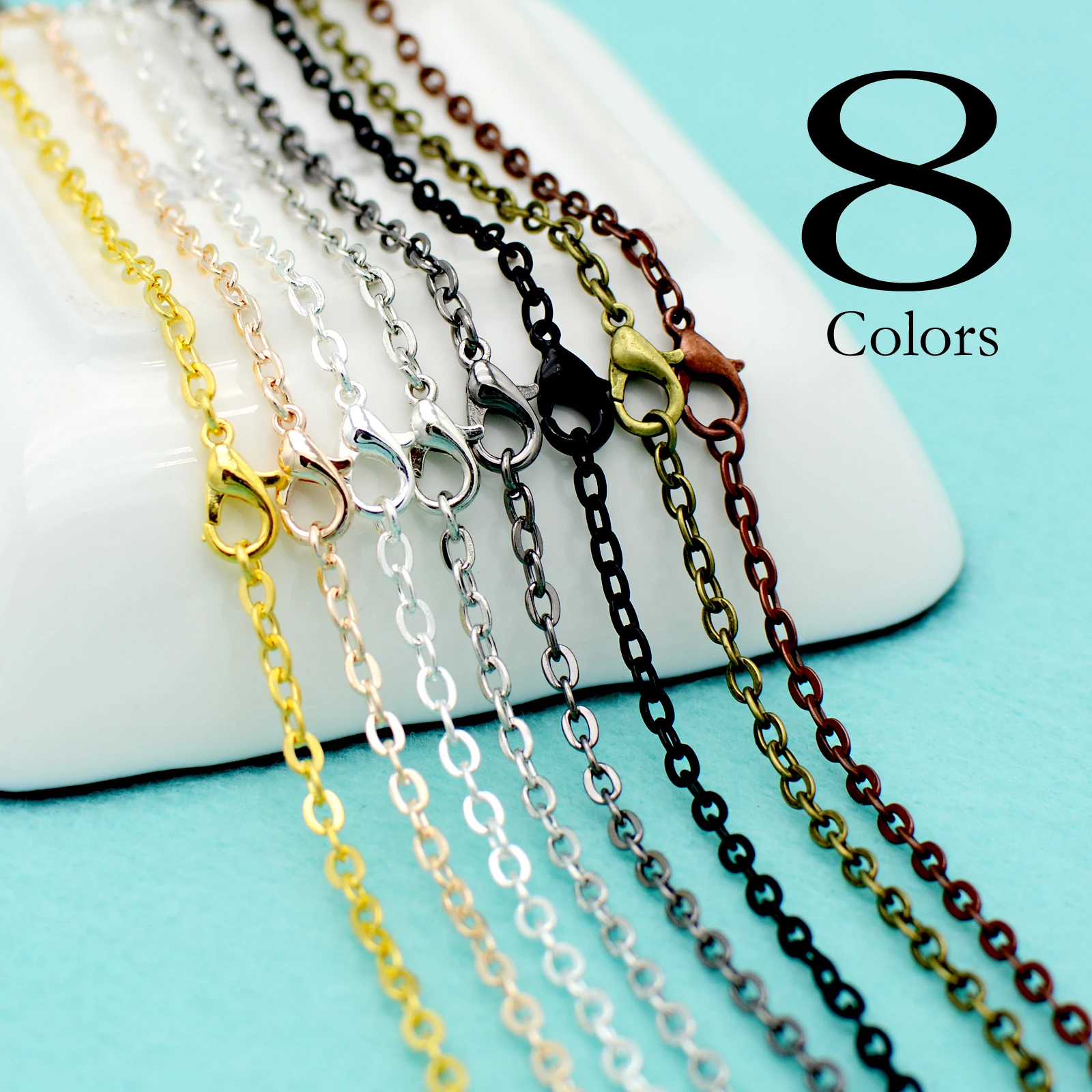 10 шт-8 цветов кабельная цепочка ожерелье, 182430 дюймов Плоская овальная звеньевая цепь, Rolo цепь-золотосеребробронзамедьметаллчерный