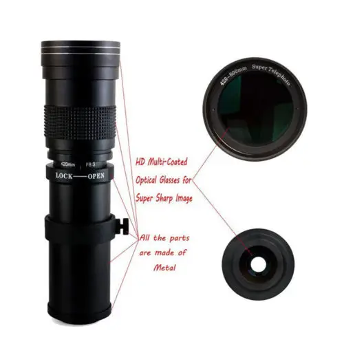 Этот телеобъектив 420-800 мм f/8,3-16 предназначен для всех, кто снимает на расстоянии от объекта, включая спортивную и фотографию дикой природы. Он легкий (550 г) и компактный (всего 29,8 см в длину), а Минимальное расстояние фокусировки составляет 1,6 метра. Это объектив с ручной фокусировкой и корпус из алюминиевого сплава.