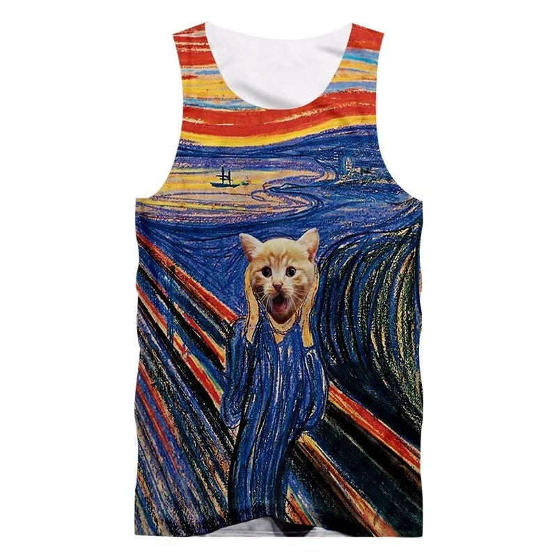 OGKB мультяшный Топ, 3D принт, животное, кошка, Hombre, Singlets, цветной жилет в полоску, Мужская одежда, хип-хоп, жилет без рукавов, 5XL