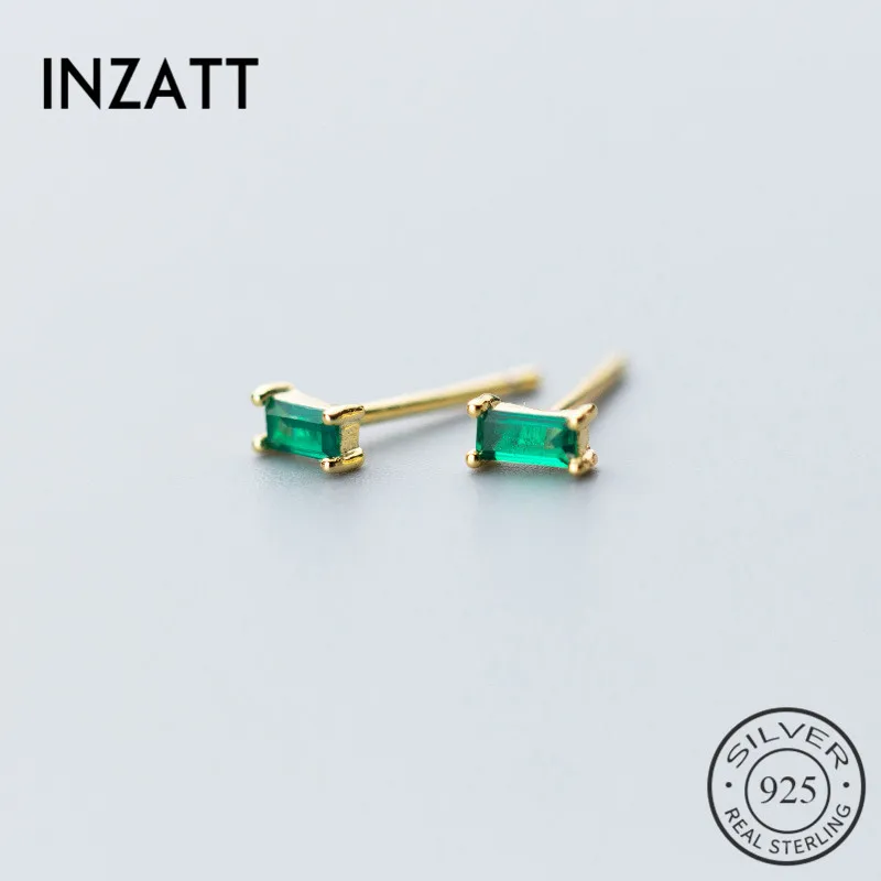 Женские квадратные серьги-гвоздики INZATT, минималистичные геометрические серьги с зеленым цирконием, из стерлингового серебра 925 пробы, золотистого цвета, ювелирные изделия в подарок