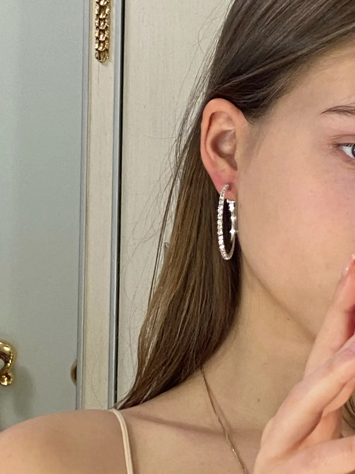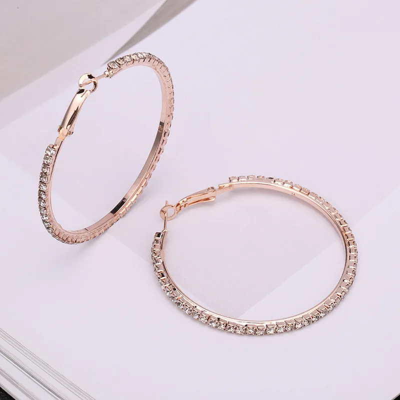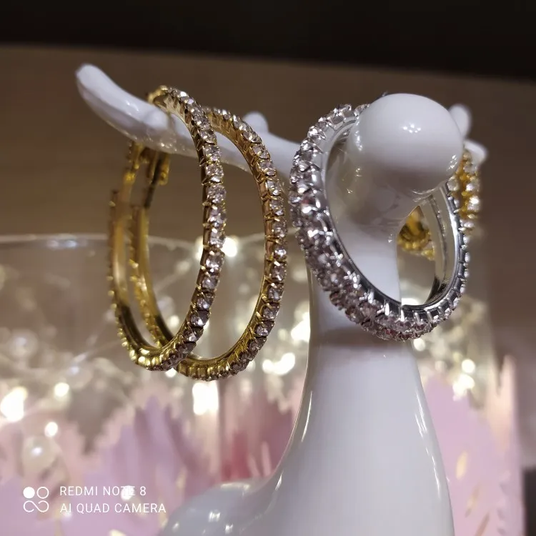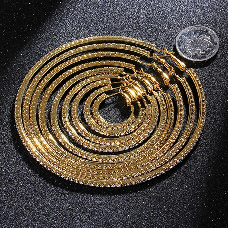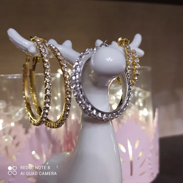 Серьги-кольца женские, с кристаллами, золотистогосеребристого цвета