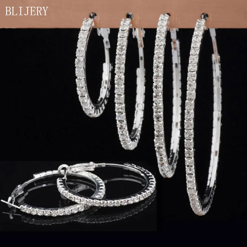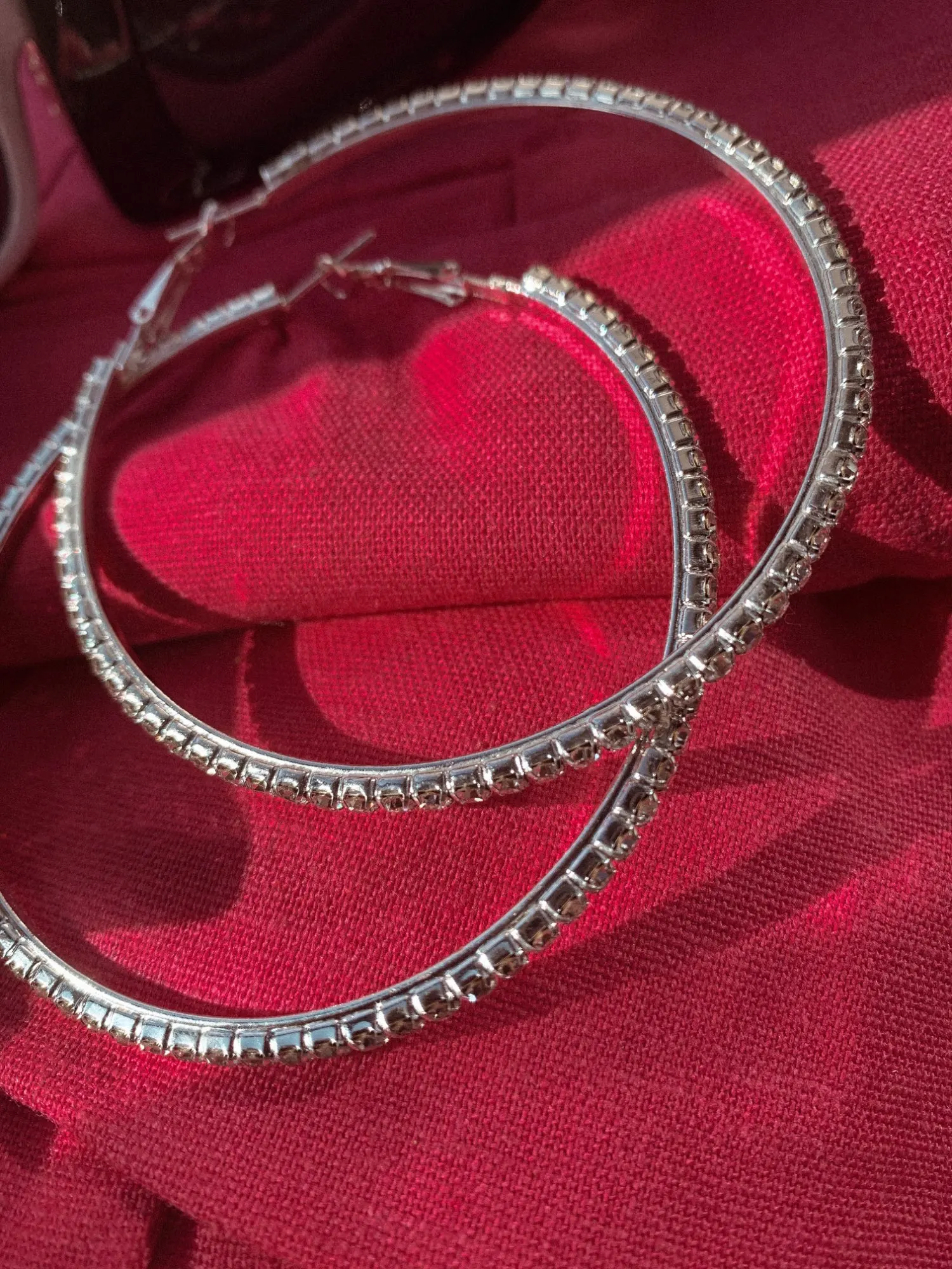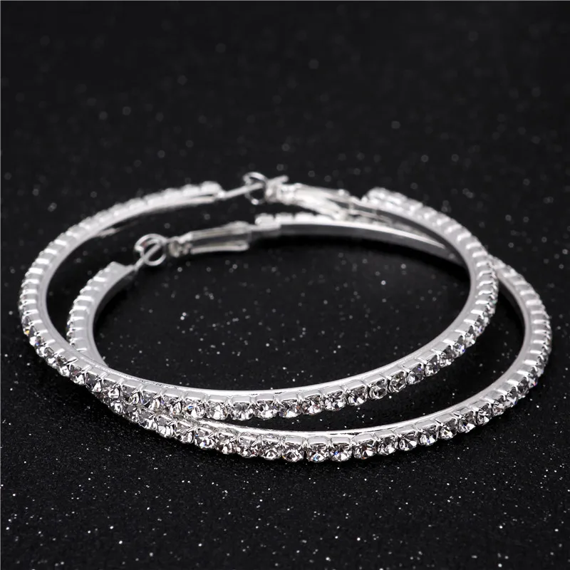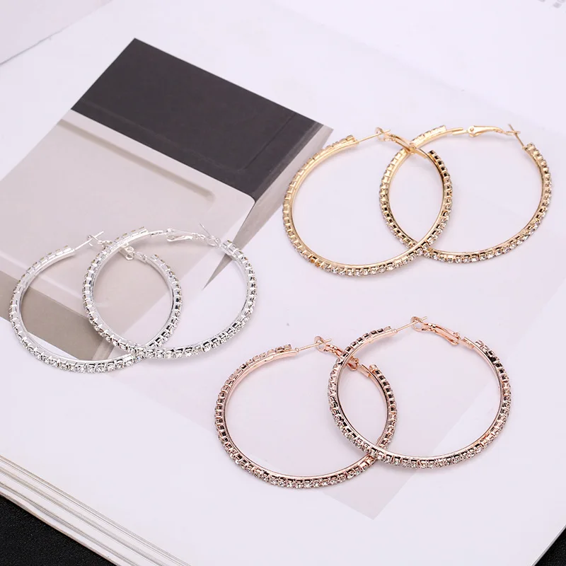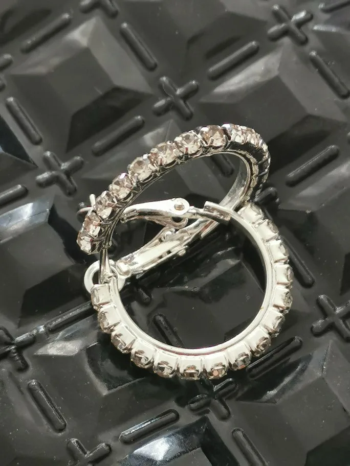 Серьги-кольца женские, с кристаллами, золотистогосеребристого цвета