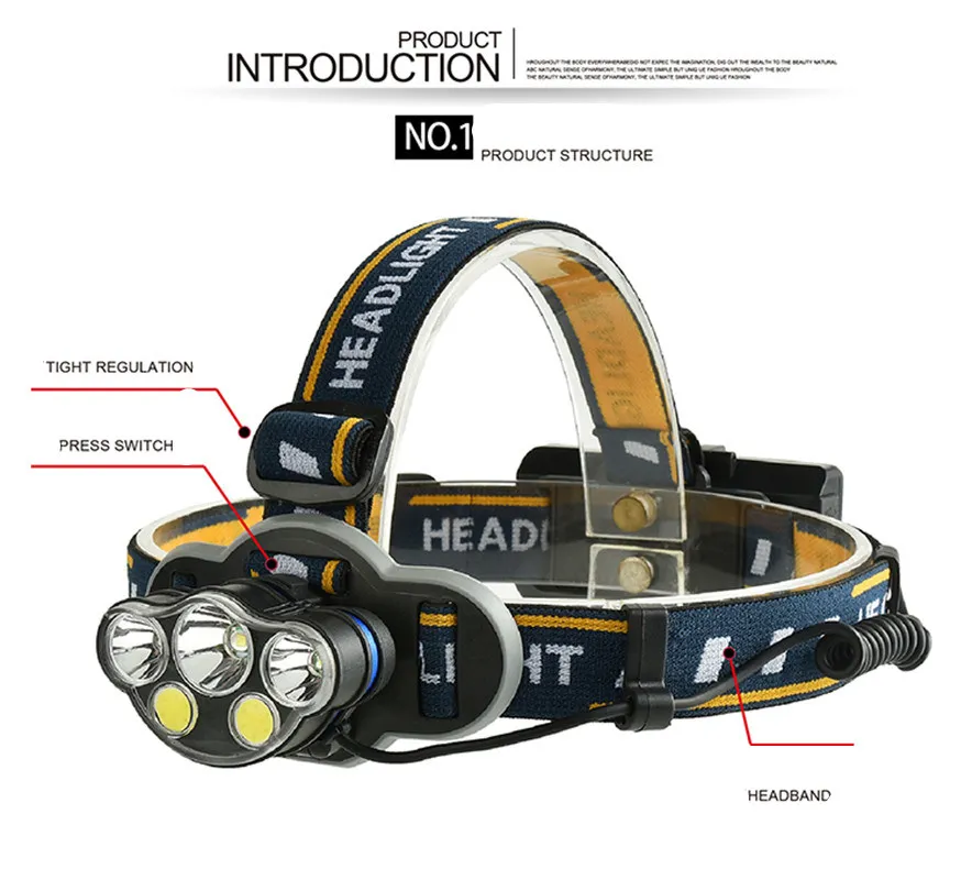 Светодиодный налобный фонарь T6 COB XPE, 8 режимов, USB, перезаряжаемый Налобный фонарик, фонарик для лампы, рыбалки, охоты, аккумулятор 18650 B2