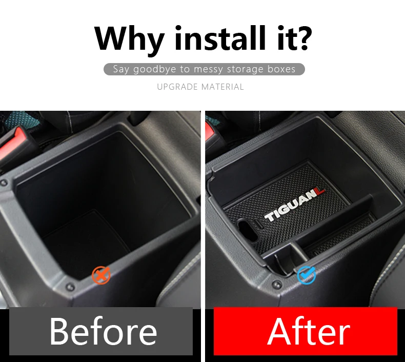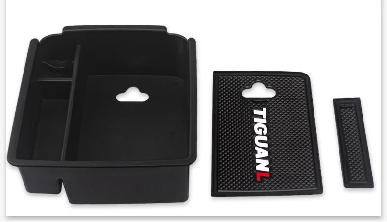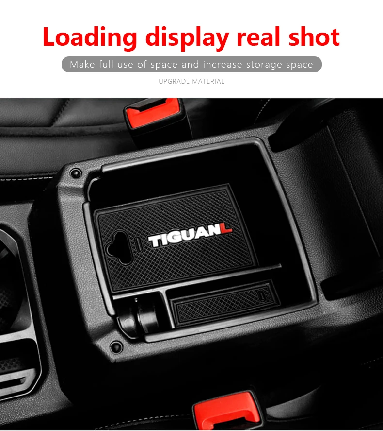 Органайзер как органайзер. По длине плюя в пулю. По ширине не попали милиметра на 3. Нет, он на место садится как надо, но пошатать его влево-вправо можно. На кочках не бренчит. Как по мне, то лучше заказать подобный, но с черным ковриком без надписей. Красная "L" в надписи "TIGUANL" прям несет китайщиной. Хотя может я чего про VW не знаю...