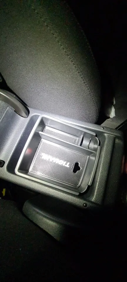Отличный органайзер в подлокотник. Лишь нужно проклеить по кругу маделином, чтоб не терся.