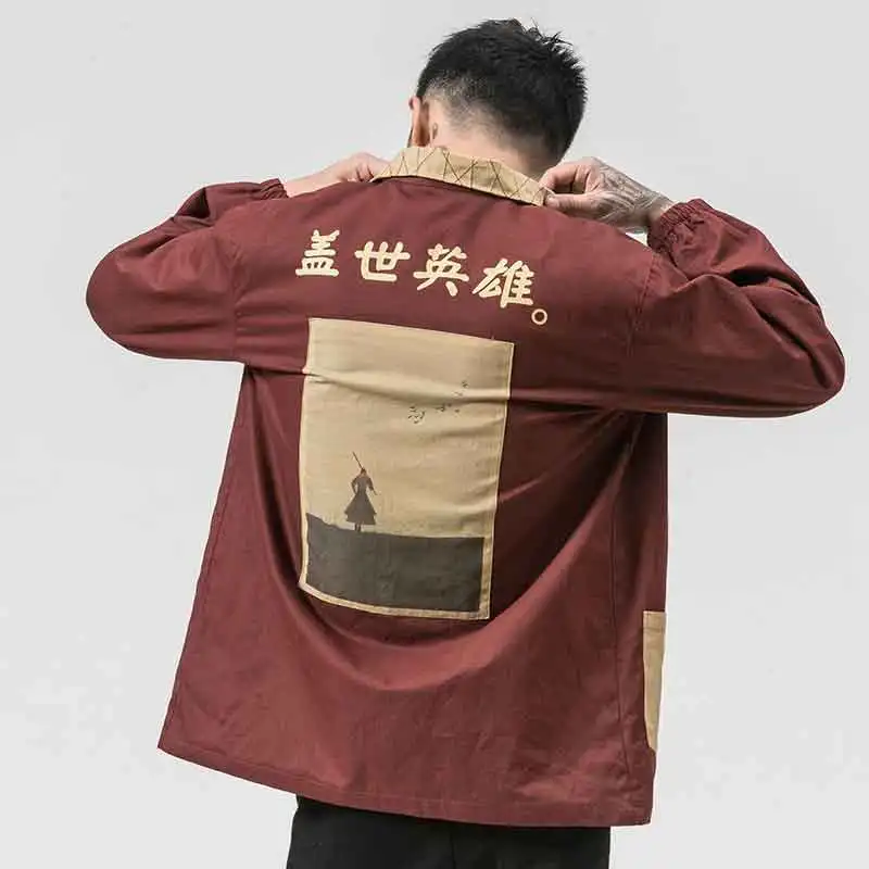 Ветровка MRDONOO мужская с длинным рукавом, рубашка с принтом, свободная осенняя куртка в китайском ретро стиле, JK15