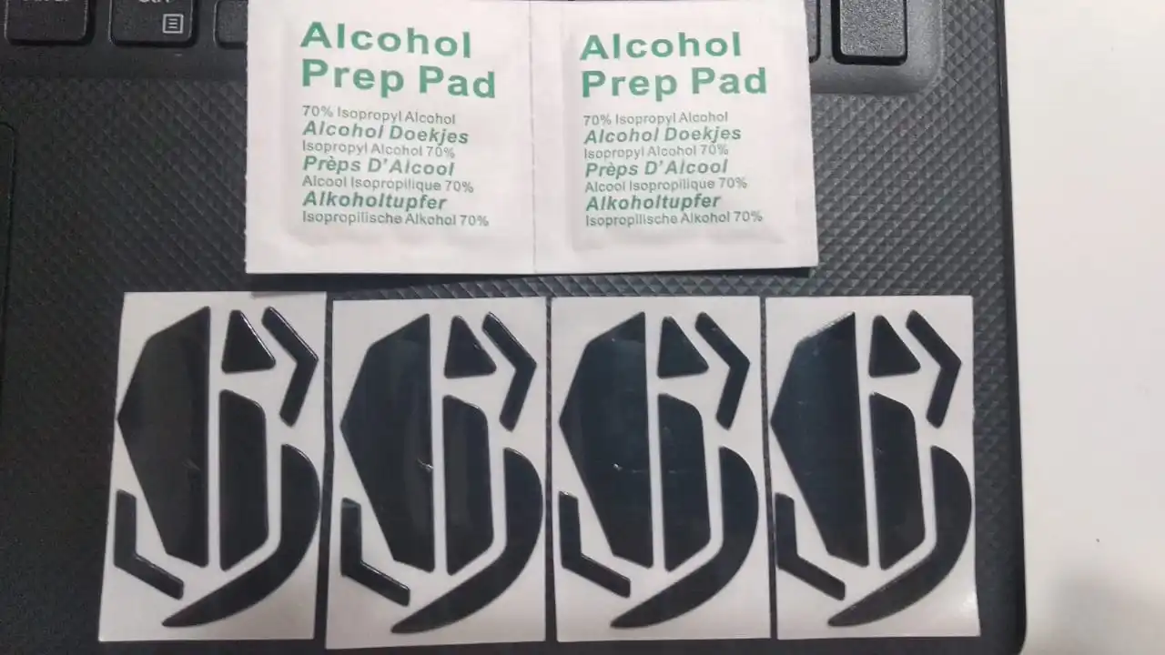 Идеально подошли к мыши, не выпирают за посадочные места. Поверхность, вроде, качественная, но посмотрим, на сколько их хватит (пользуюсь пластиковым ковриком для мыши - он ножки ест оперативно).