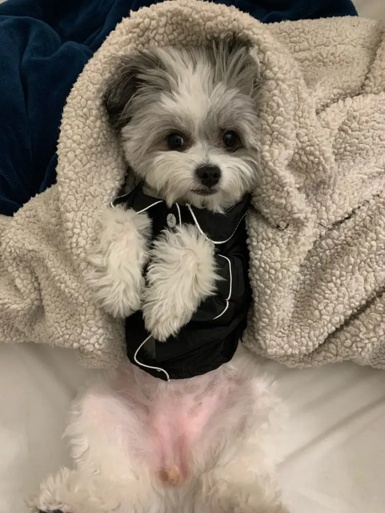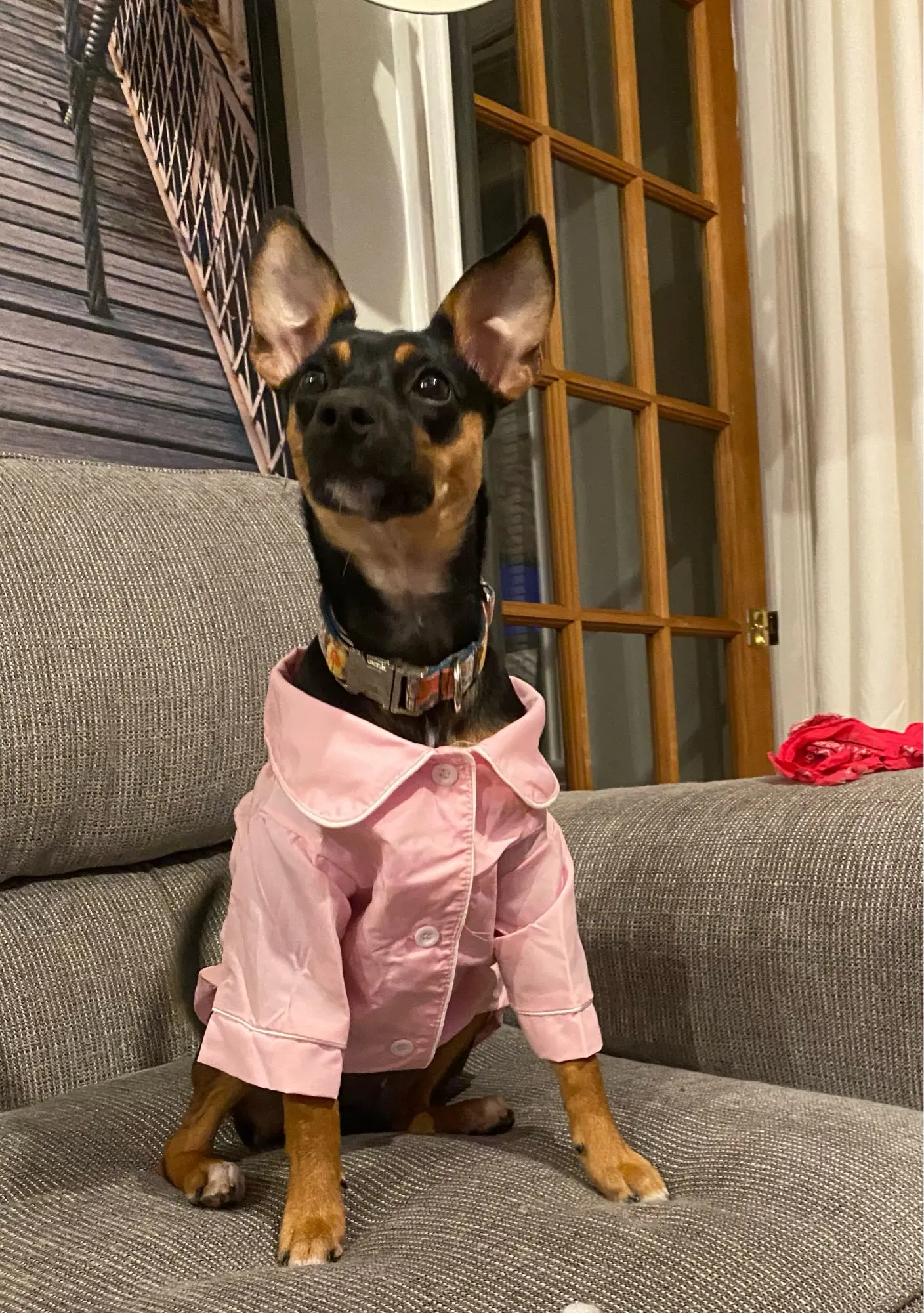 Материал очень гладкий и выглядит как на картинке! Размер S идеально подходит для моего 2 кг чихуахуа. Очень доволен этой покупкой!