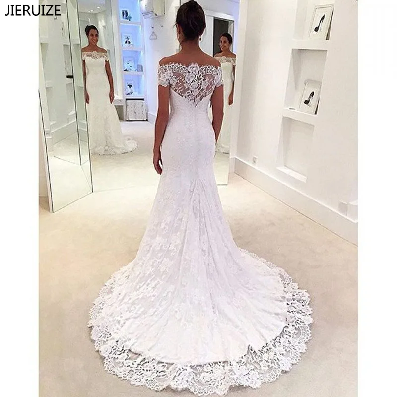 Женское свадебное платье с юбкой годе JIERUIZE, винтажное кружевное платье с коротким рукавом и открытыми плечами, свадебное платье
