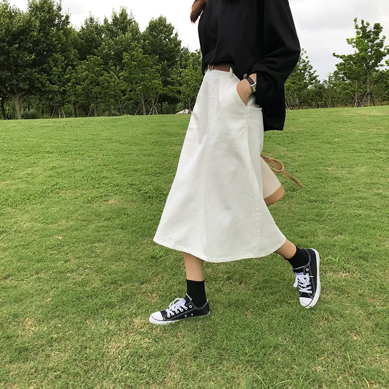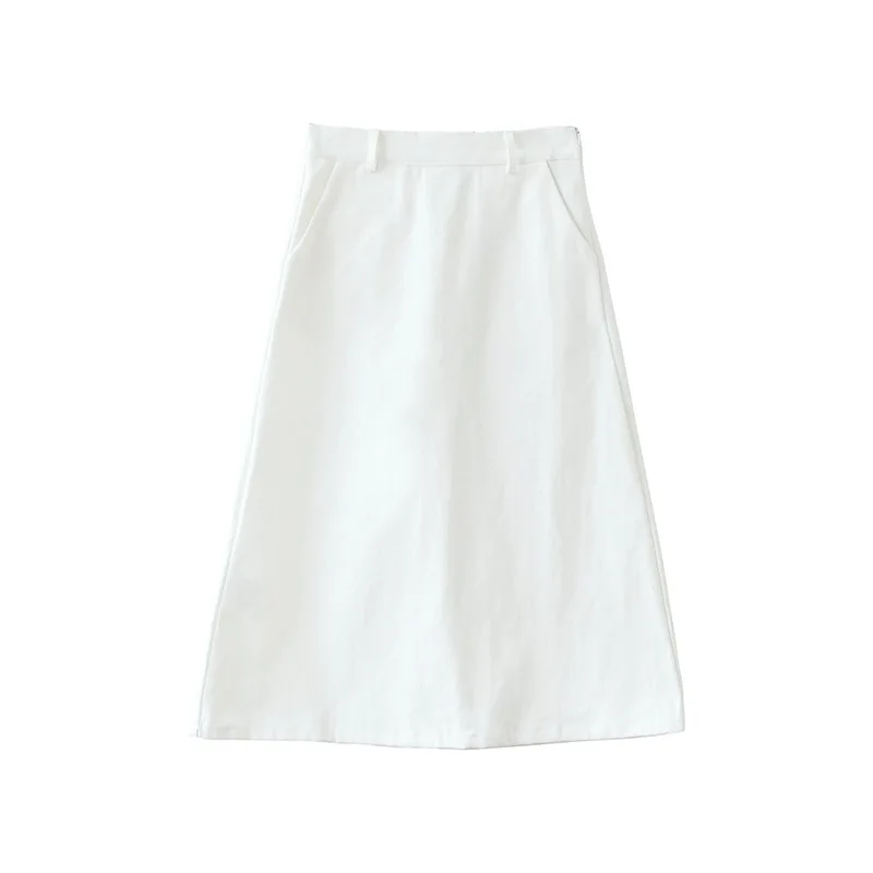 Простая саржевая хлопковая юбка миди, трапециевидный стиль,Боковые карманы и потайная молния сзади.