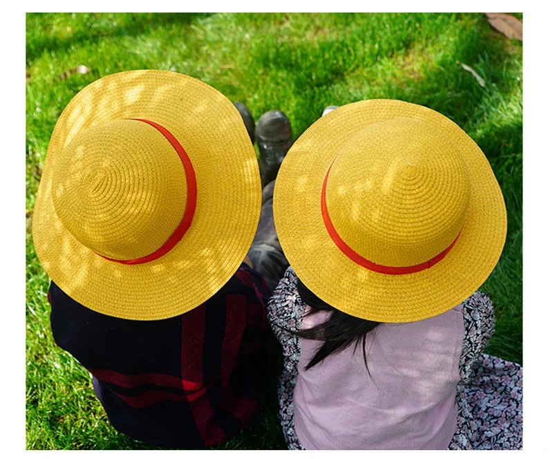 Соломенная шляпа для мальчиков и девочек, плоская шляпа Луффи, в японском стиле, реквизит мультфильмов, детская пляжная шляпа в красную полоску, YF001