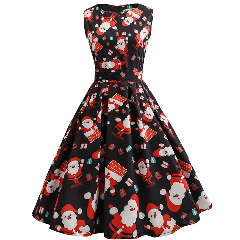 S 3XL рождественские Женские облегающие винтажные повседневные Элегантные вечерние платья миди без рукавов с цветочным принтом Vestidos Robe