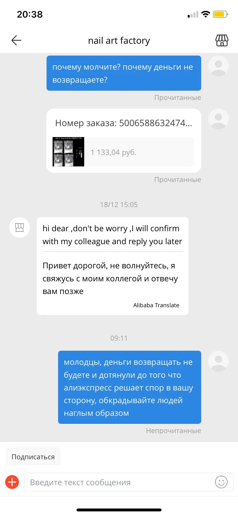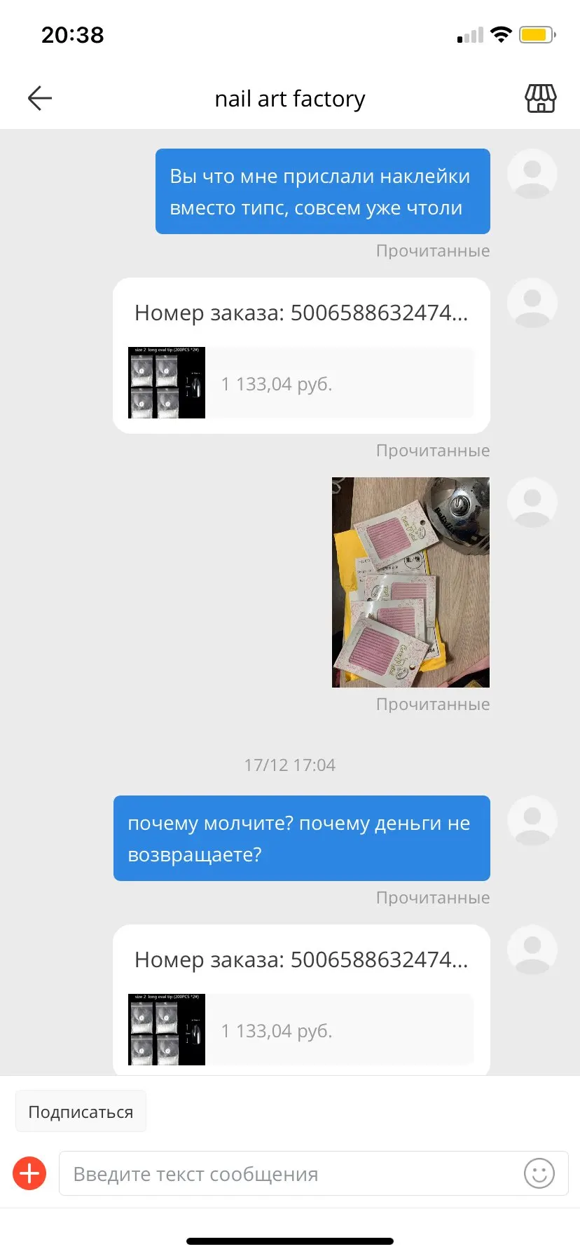 Отвратный магазин, где людей обманывают на деньги. Сделала заказ на 1000 заказала много упаковок типс, продавец прислал вместо заказанного товара копеечные наклейки. На мое сообщение продавец промолчал пока я не написала снова, на что он мне ответил ждать. А тем временем алиэкспресс посчитал, что мои деньги нужнее продавцу, а я обойдусь без товара и денег одними наклейками. Хотите сохранить деньги не покупайте у этого продавца.