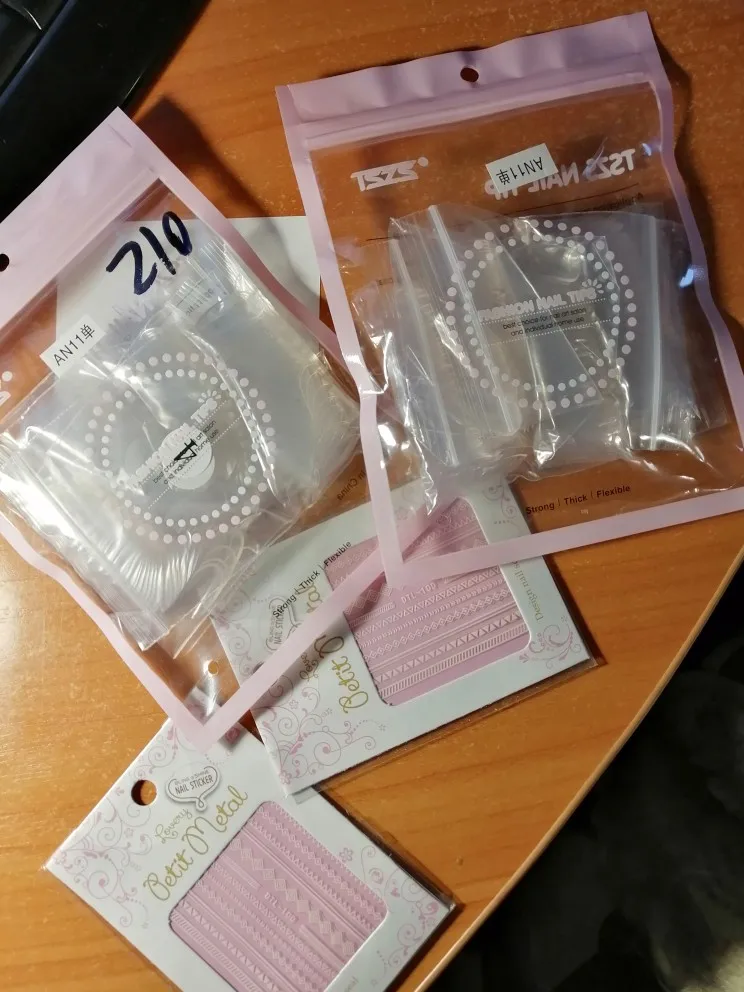 Заказала 11.11.20 Пришло 30.11.20 За 20 дней, очень быстро. Все пришло целое, герметичность посылки не нарушена, упаковано хорошо, без дефектов, повреждений и брака. Качественные пластиковые типсы, брала для отрисовки дизайнов. Качественные, довольно жёсткие, хороший пластик, не ломаются при сгибе. Пришли в пакетике и внутри ещё 4 зип пакетика по 50штук, всего 200 штук. Продавец положил подарочек, две штуки наклеек на ногти, очень приятно))) В целом все хорошо. Заказом довольна, спасибо продавцу)