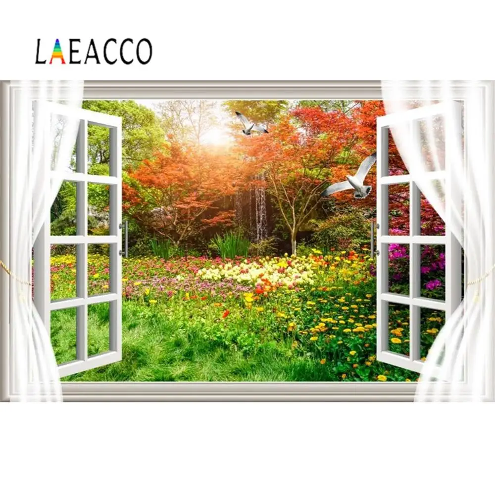 Laeacco Весна Зеленая трава флаги деревья декор для вечеринки ребен...