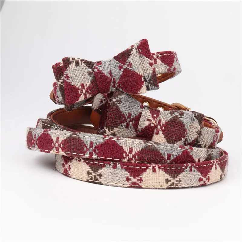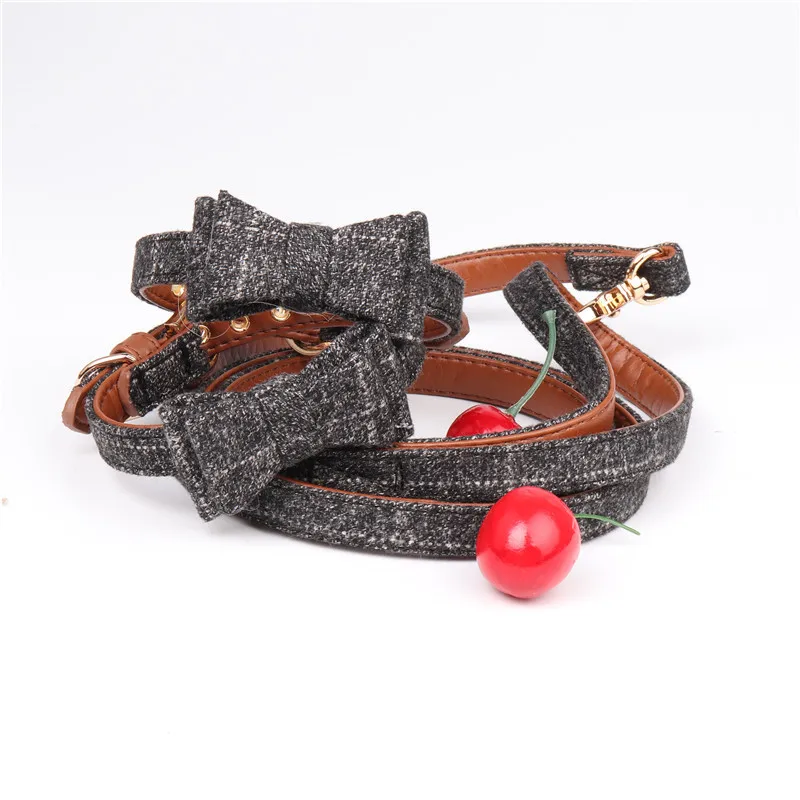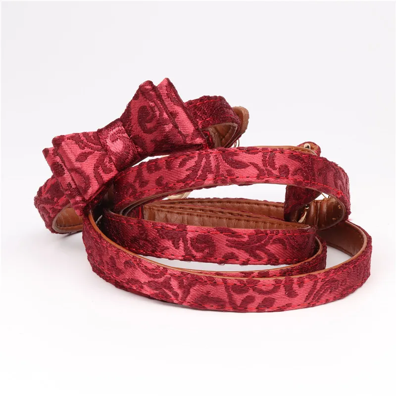 Кожаный ошейник для собаки с бантом, поводок для кошки, колейра, ошейник для питомца, милый воротник Перро для собак Gatos, мопс, чихуахуа, аксессуары для собак