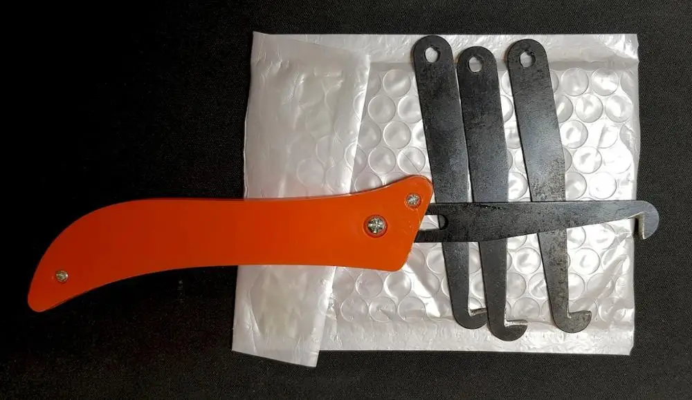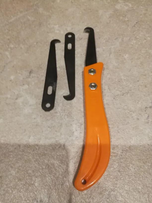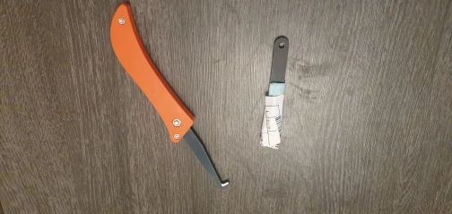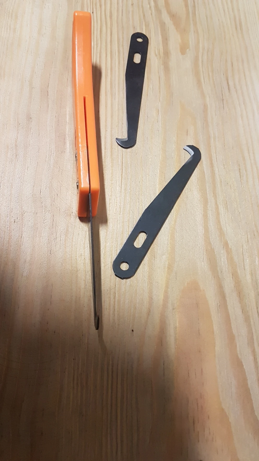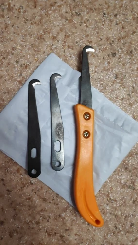 Нож-крючок с запасными лезвиями купил для зачистки швов, но оказалось, что им удобно делать и другие работы! Сделан просто. Ручка не такая удобная, как у перочинных ножей, хотя принцип раскладывания и складывания идентичен. Можно было спроектировать и более эргономичную рукоятку. Видимо, принцип удешевления производства тут был главным. :-) Тем не менее, свою задачу выполняет, покупкой доволен. Доставили в Москву за две недели в одной посылке с другими. Рекомендую товар и поставщика!