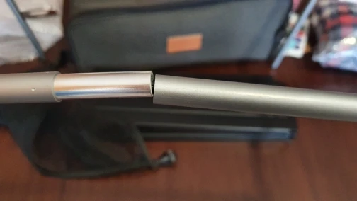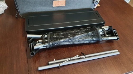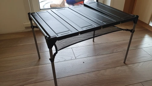 Пришёл быстро. Упакован хорошо. Полочки завернуты в пупырку. Комплектный чехол качественный и красивый. Собирается быстро, к разборке надо приловчиться. Достаточно крепкий. Мне пришёл брак, был загнут край одной пластины так, что стол не собирался. Видно на фото. Продавец дал 10$ компенсации купоном. Суставы кажется из полиэтилена, на холоде могут сломаться. Втулки длинные.