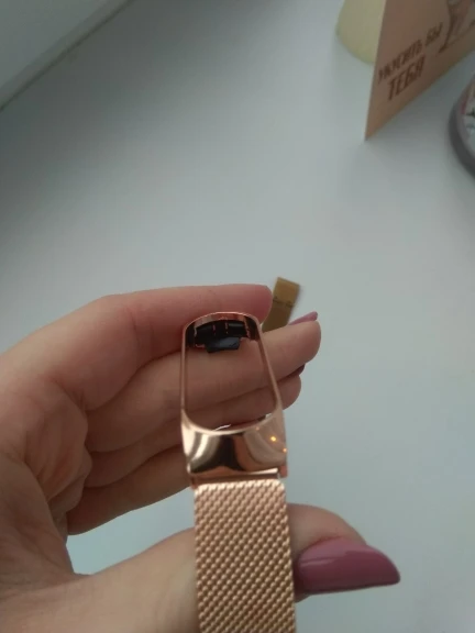 Ремешок довольно неплохой, ждала очень сильно, т.к. старый уже совсем не золотой) доставка была долгая, за счет праздников скорее всего: заказала 11.11 и пришел ко мне на почту заказ числа 20.12 . крепление самого браслета внутри пластиковое, надеюсь, не сломается, потому что в предыдущих был ролик внутри и сомнений не было. на самом браслете есть небольшое пятнышко, будто капля розового цвета попала, думаю, в глаза не сильно будет бросаться.
