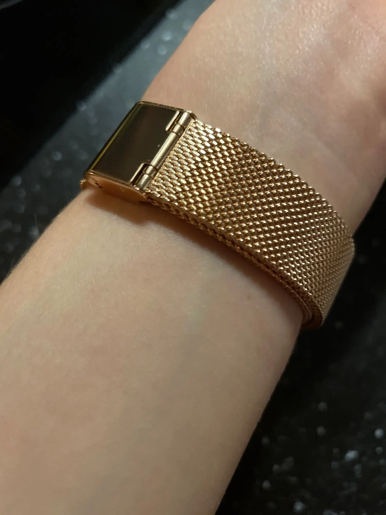 Прекрасные ремешки, прибывшие в месяц, доставка, хорошая цена, прекрасно работает с моей лентой, как вы можете видеть, может регулировать размер для вашей руки. Нравится как золото, так и Роза. Золото имеет блестящий эффект, Роза-матовый эффект.