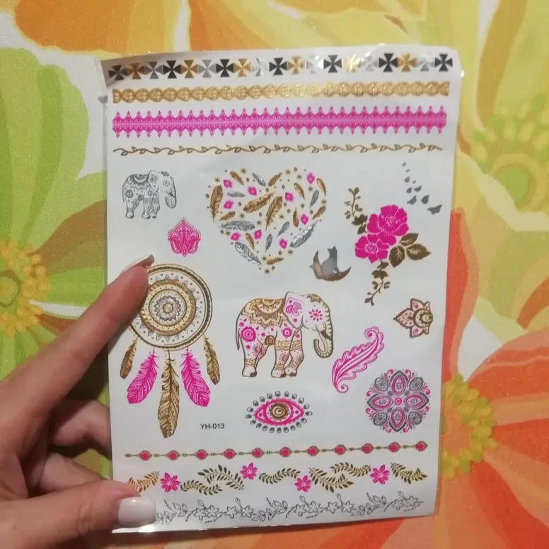1 лист Flash Boho металлические золотые перья мерцающие ювелирные изделия праздничные временные татуировки