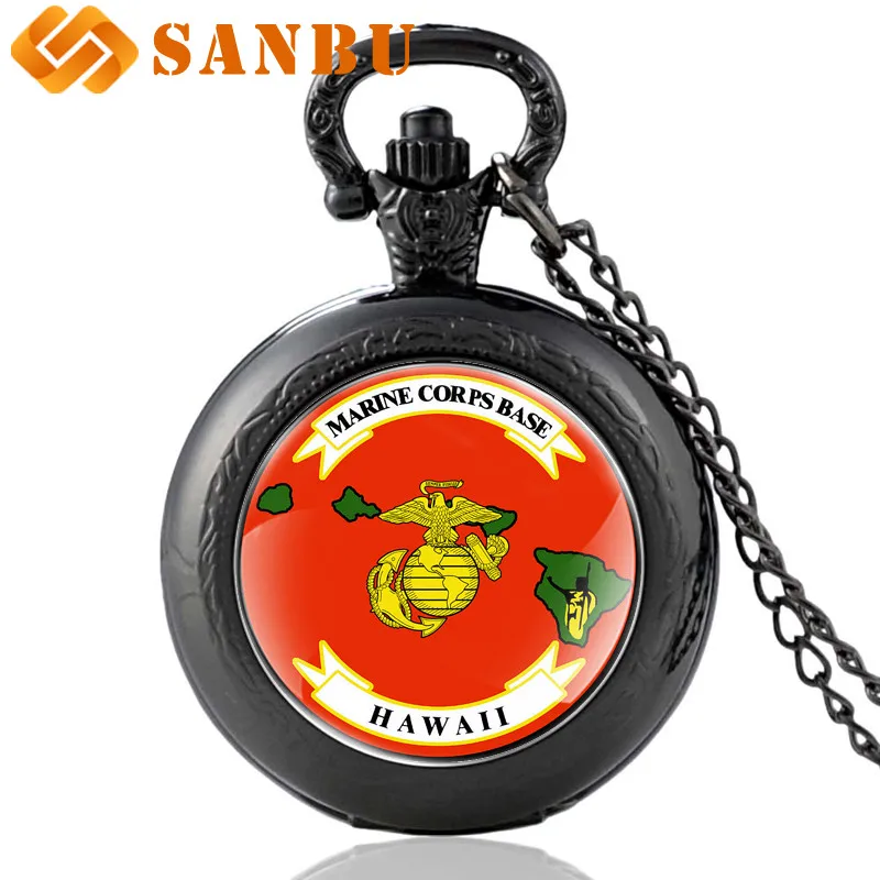 Винтажные бронзовые часы корпуса морской пехоты США, кварцевые карманные часы Hawlii, ретро мужские и женские часы армии США с подвеской, цепочка, часы в подарок