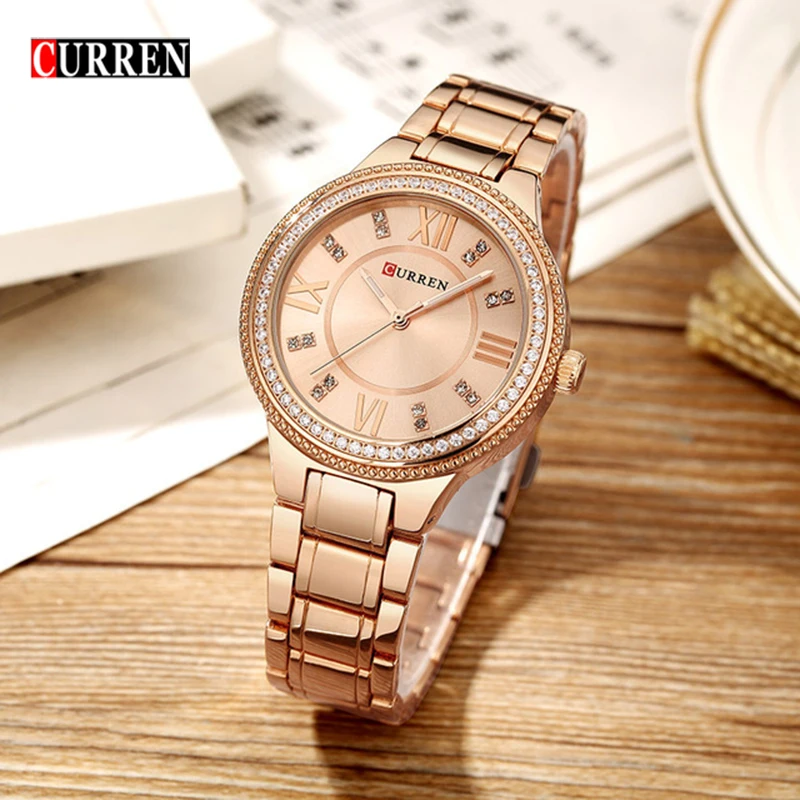 CURREN, новые модные женские часы, стразы, нержавеющая сталь, безоп...