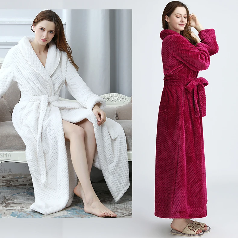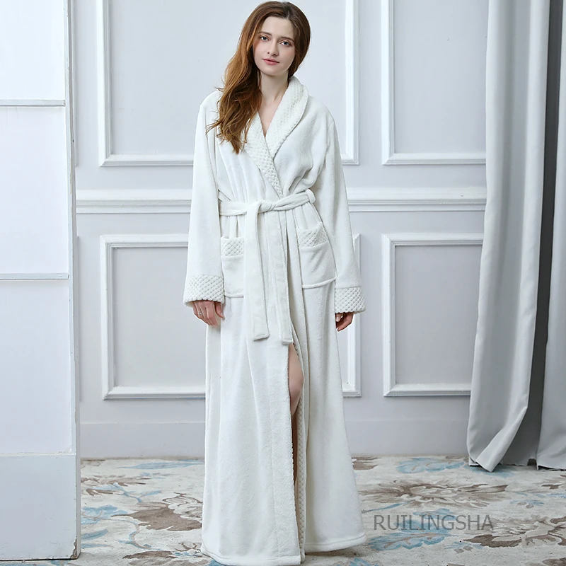 Женский зимний удлиненный плотный фланелевый банный халат, теплый пеньюар, пикантный халат, мужской халат для подружки невесты, халаты для невесты