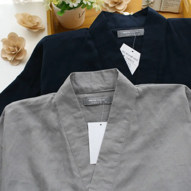 Мужские пижамные комплекты QWEEK, Хлопковая пижама-кимоно, Мужская пижама, мягкая домашняя одежда для мужчин, 2 предмета, одежда для сна в японском стиле