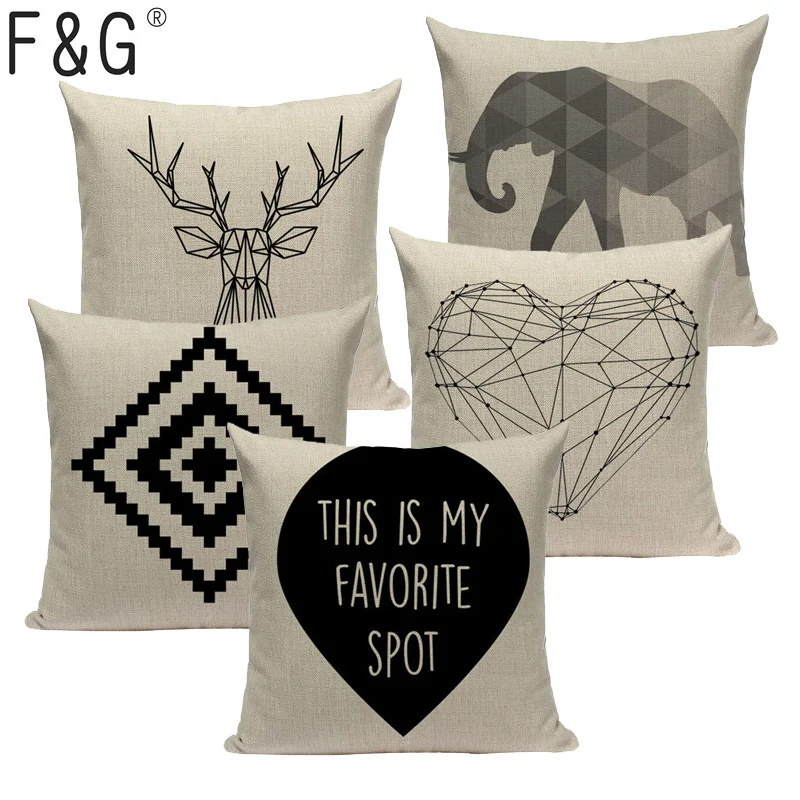 С надписью Love для дома подушки Чехлы хлопковый льняной черный, бе...