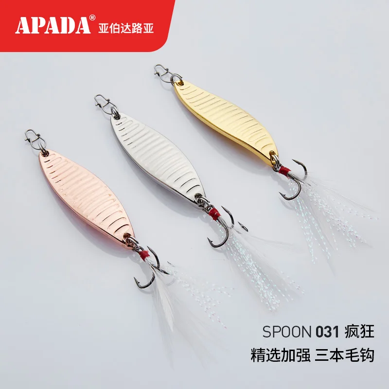 APADA Spoon 031 мания тройной крючок 10g-15g-18g 55-61-66мм перо металлическая ложка многоцветная рыболовная приманка