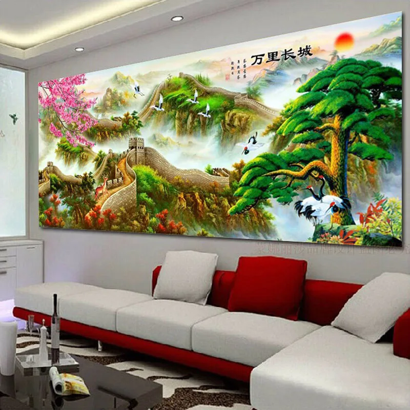 QIANZEHUI, алмазная 5D Вышивка сделай сам из сосны и Великой стены, круглая Алмазная полноразмерная картина, вышивка крестиком, рукоделие