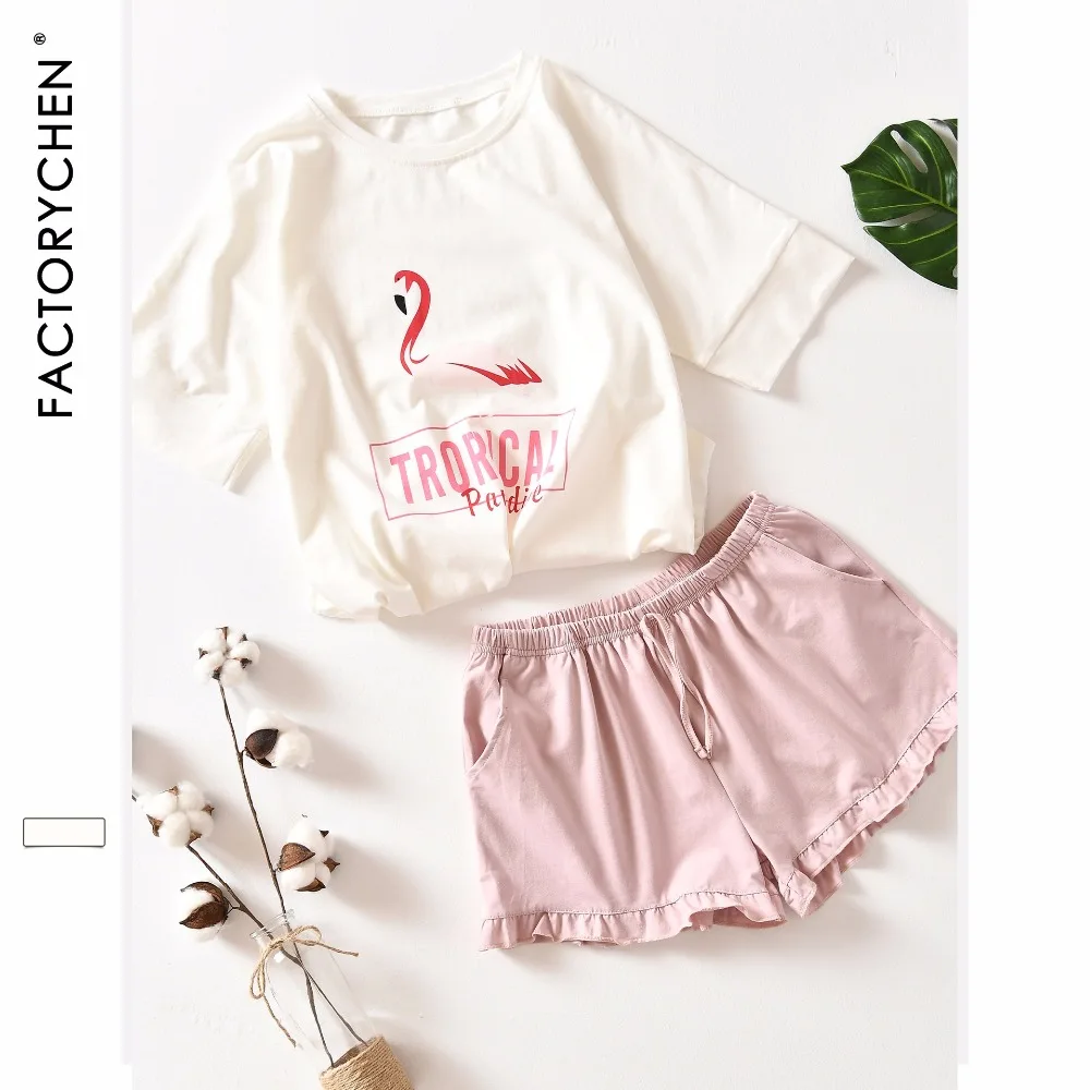 Пижамный комплект Женский, с коротким рукавом и шортами, из 100% хлопка