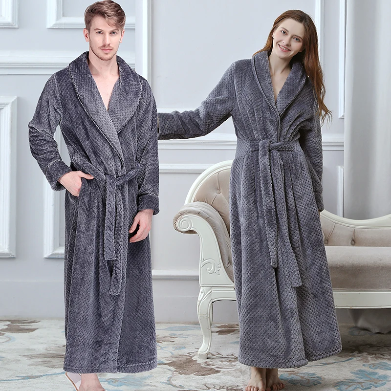 Мужской, женский, мужской зимний удлиненный плотный теплый фланелевый Халат в клетку, мужской s термальный роскошный банный халат, мягкий, как шелковый халат, мужские халаты
