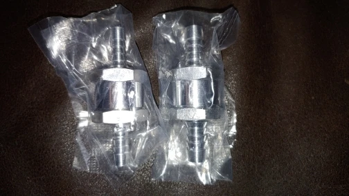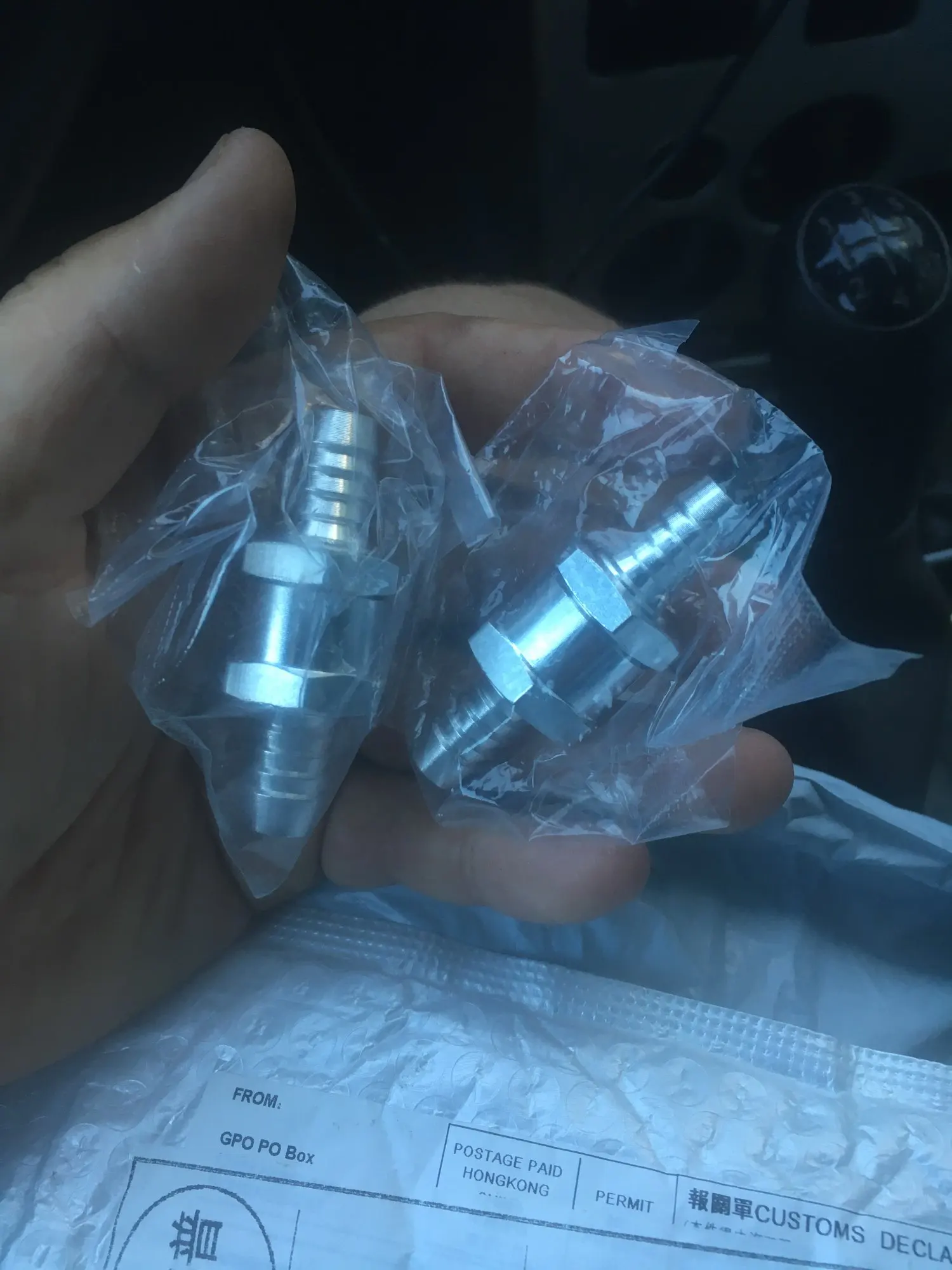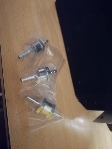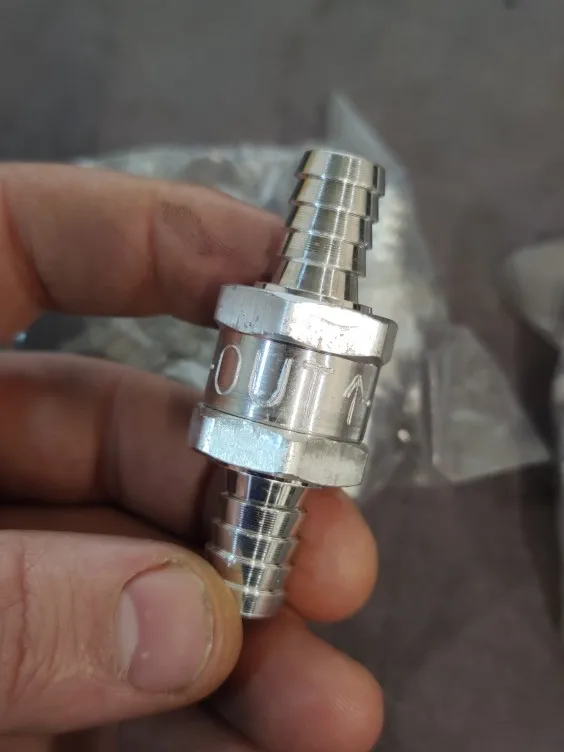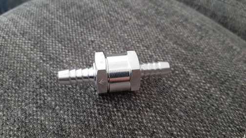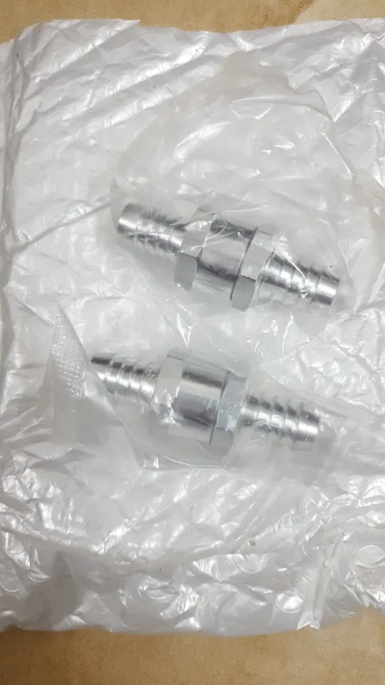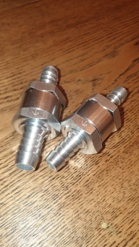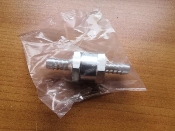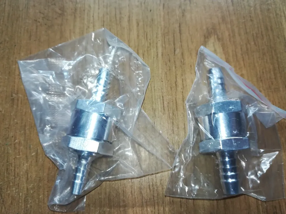 Доехало нормально. Качество очень приличное. Реальные диаметры штуцеров на фото. Это клапана 8 и 10 мм. Проверил вакуумным тестером. Клапан 10 мм стоит идеально, у 8-ми миллиметрового стрелка очень медленно ползёт. Попробую ещё на жидкости, но, думаю, будет держать нормально. Если будет капать, дополню.