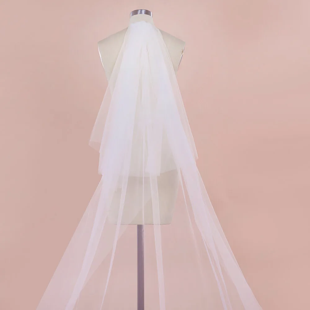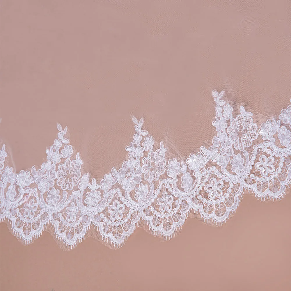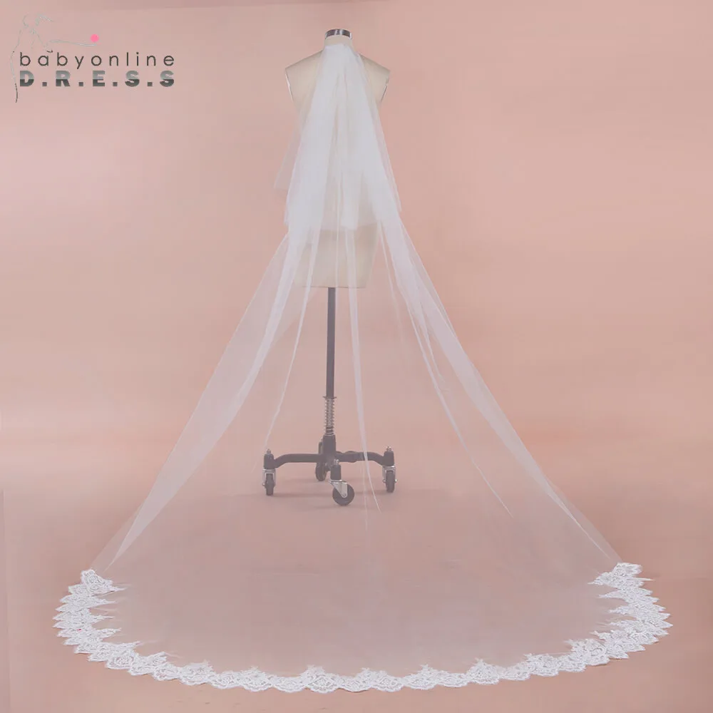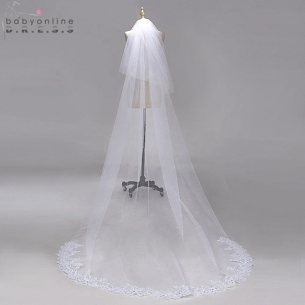 Вуаль для свадьбы, 3M, с блестками, с кружевным краем, для собора, Длинная свадебная вуаль с гребнем, два слоя, покрытая лицом, тюль, Фата для невесты, Veu de Noiva