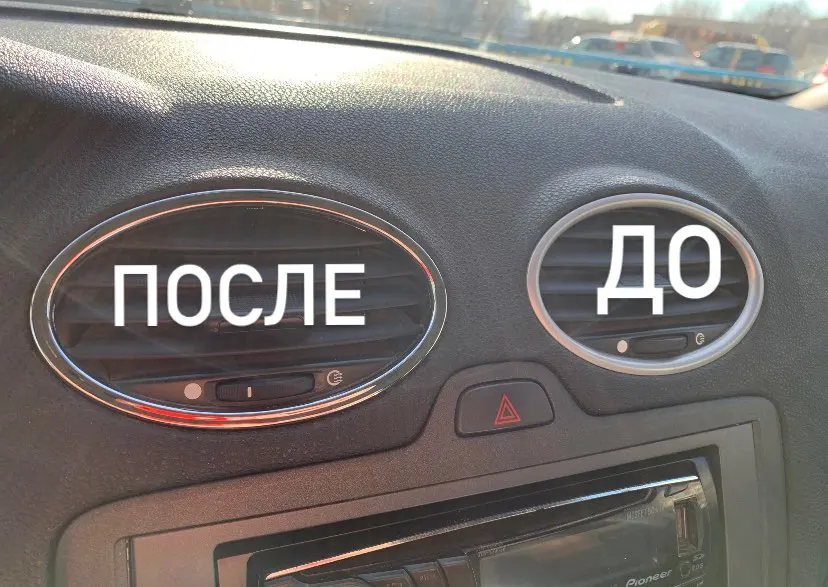 Прикольные штуки, салон преобразился сразу, но не без косяков, на каждой кругляшке, есть одна защелка на которой не обрезан отлив или она так отлита, как зря, надо обязательно ножичком подчищать иначе не защелкивается и в целом 2 защелки которые ближе друг к другу садятся идеально, а две противоположные оттопыриваются, потому что они ближе к краю овала сделаны и упираются в дефлектор, но это мелочи все держится нормально . А так все легко, в дефлекторе вверху отверткой оттягиваем 2 защелки и вытаскиваем его на себя, отщелкиваем старые окантовки и прищелкиваем новые.