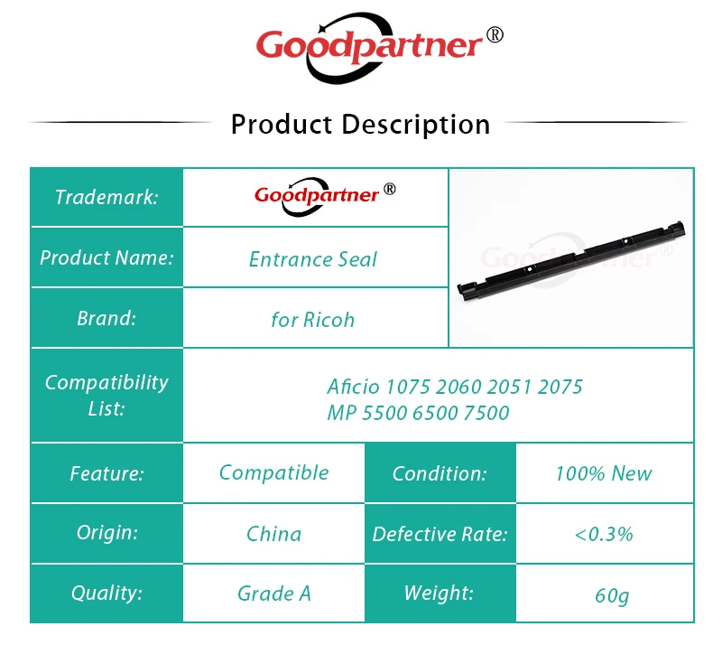 Входное уплотнение разработчика 5X B110-3091 B065-3091 1060, для Ricoh 1065, 2060, 1075, 2075, 2051, 5500, 6000, 7000, 7500, 8000, 9001, 7502