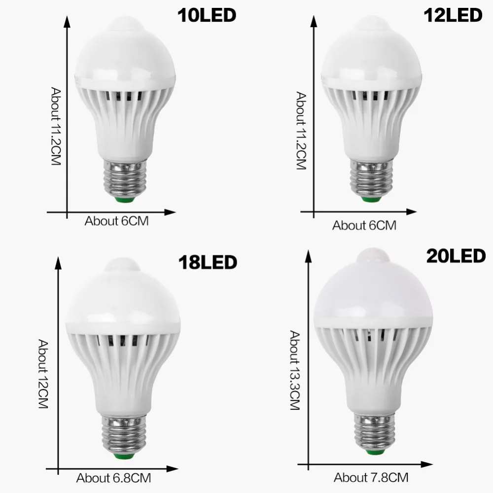 Умная Светодиодная лампа E27 с датчиком движения, автомобильный звуковой светильник 3 Вт 5 Вт 7 Вт 9 Вт 12 Вт 110 В 220 В, инфракрасная лампа для тела