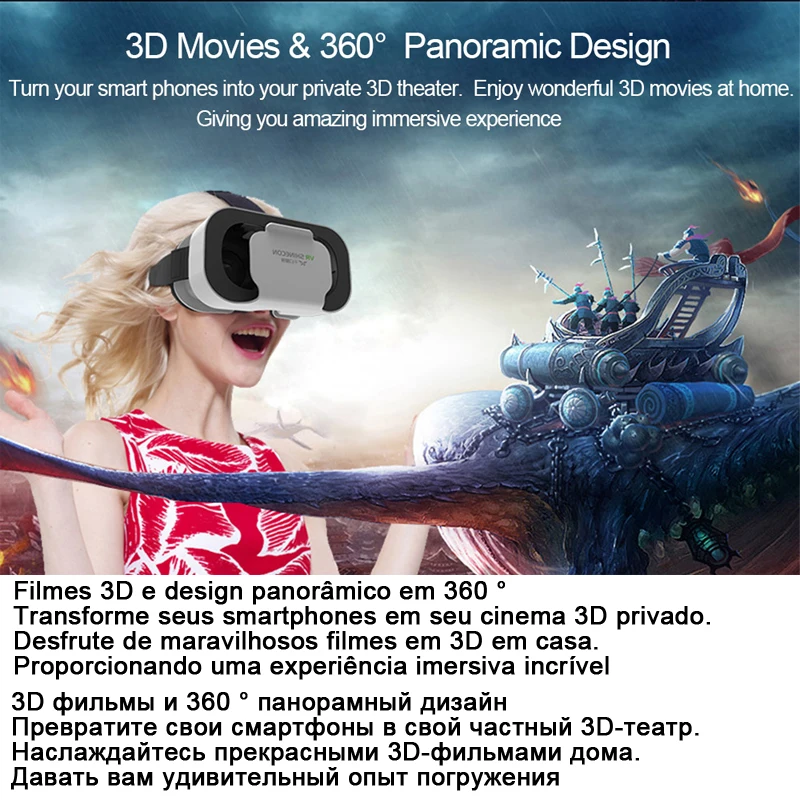 VR Shinecon G05A вр видео шлем виртуальной реальности очки 3D 3 D для iPhone Android VR смартфона умные виар игр смарт смартфонов дополненной телефона комплект видеоочки с экраном контролерами стерео активные нейрошлем