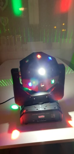 Супер быстрая доставка (5 дней) и прочная упаковка. Очень красивый, компактный, многофункциональный свет :) яркие цвета, сильный стробоскоп, лазеры и много движения головы. Красиво работает в режиме Авто/звука :) только вещь на минус-это громкий охлаждающий вентилятор, работающий все время на высокой скорости...