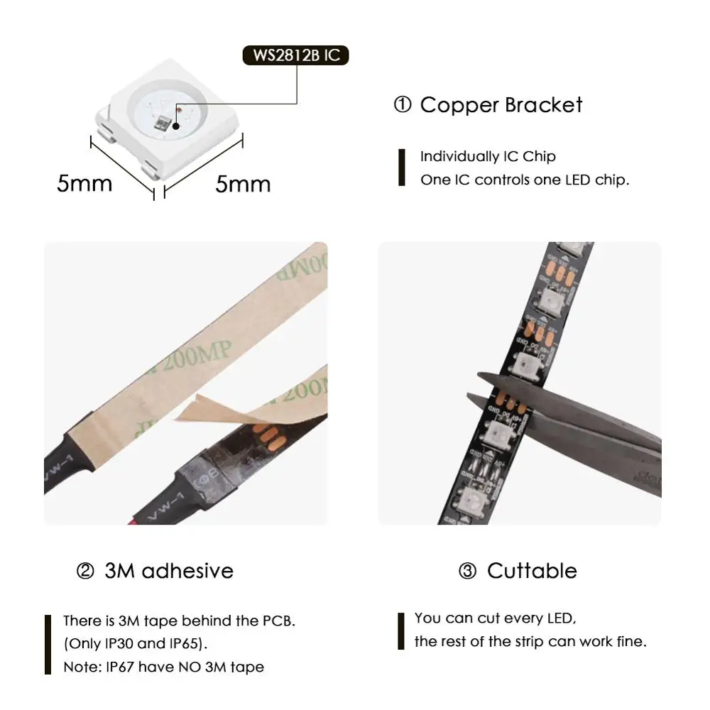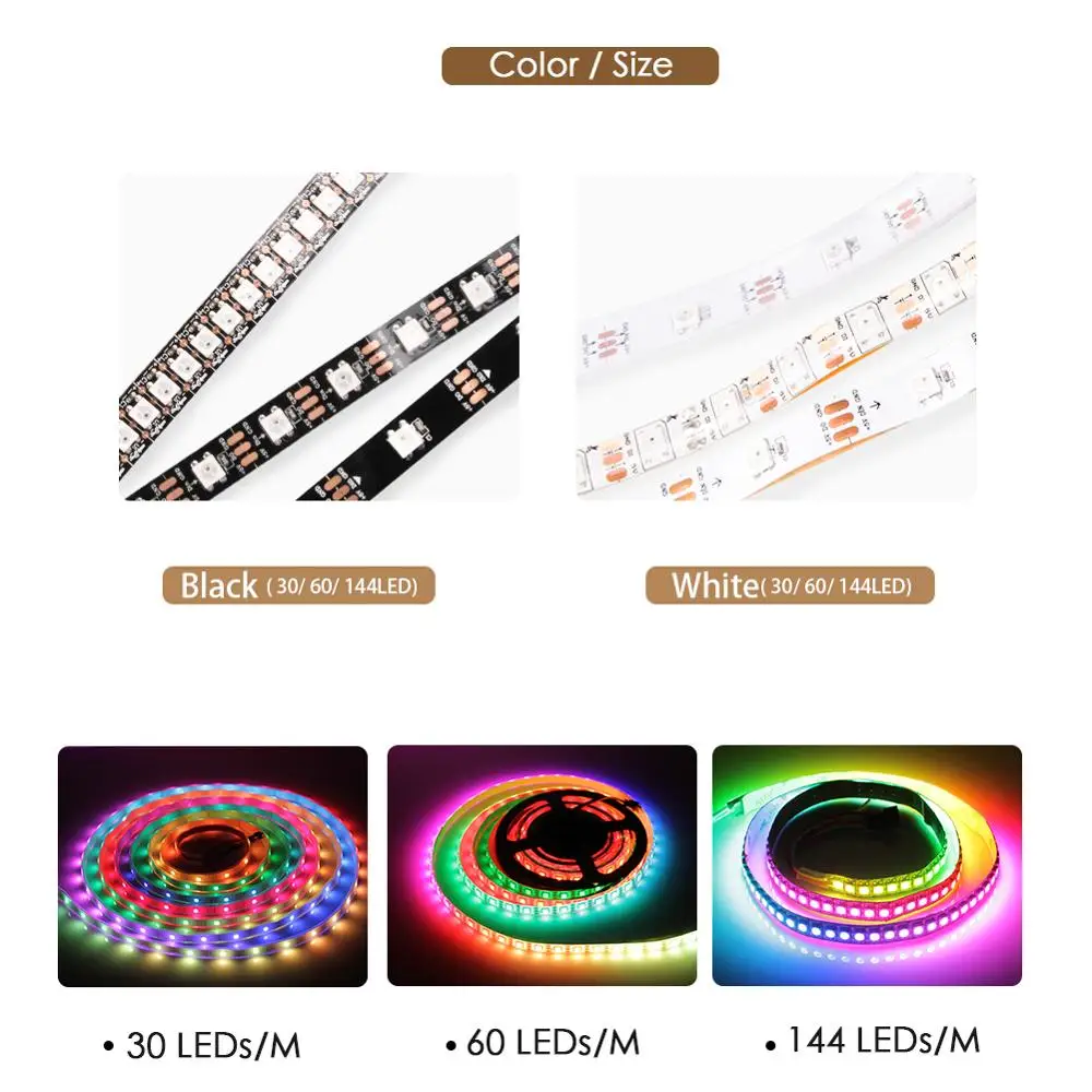 Светодиодная лента WS2812B, 5 в постоянного тока, чёрно-белые печатные платы, WS2812, микросхема 3060144 светодиодов, 17 клавиш, RGB, 50 см, 1 м, 2 м, 3 м, 4 м, 5 м