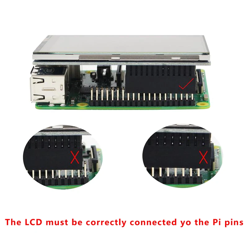 2). Пожалуйста, Придерживайтесь накладка на заднюю часть 3,5 дюймовый сенсорный экран карбоновое волокно (как показано на рисунке), а затем вставьте устройство для чтения 3,5 дюймовый сенсорный экран на Raspberry Pi GPIO pin правильно (с надписью «don't be неправильно расположенный)